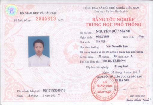 Các bạn có thể sử dụng tấm Bằng THPT Bình Thuận này đi xin việc làm , nâng bằng lái xe ,đi học , đi du học , XKLĐ (xuất khẩu lao động) khắp mọi nơi.